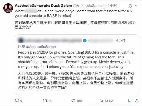 此举彻底激怒了“黄昏魔像”。他专门发布长文,直接批评上述博主,并强调核心观点:此次PS5涨价并不符合行业常规。他援引历史数据作为论据——“回顾过去六年的主机发售周期,从未出现过此类中期调价的情况。”他认为,将普遍的经济通胀与游戏主机特定的定价策略相提并论,并不合理。