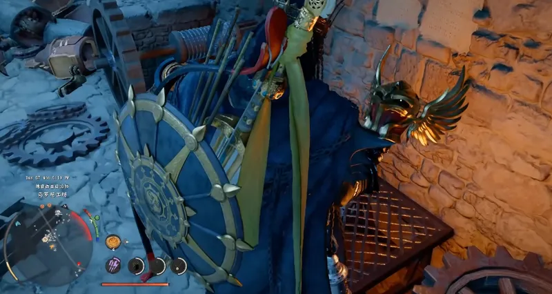 紧接着,你需要找到工坊的主体建筑入口并进入其中。头盔就隐藏在这座建筑的内部,这是获取装备的核心步骤。