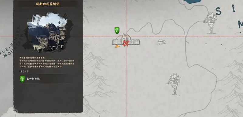 获取闪电戒指的核心区域,位于游戏地图左上角的威斯玻利普城堡。这座城堡是游戏中期一个标志性的探索地点,位置相对显眼,是许多玩家必经之路。