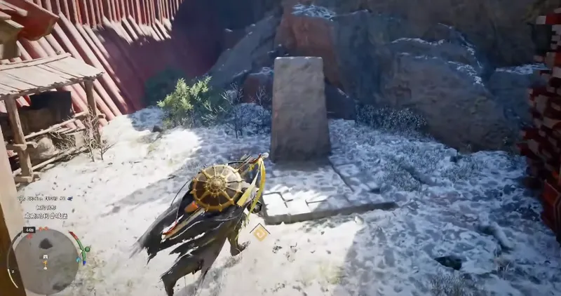 在这座红房子周围进行仔细搜寻,你会发现一个看似普通的石碑,这实际上是一个隐藏的暗门入口。整个获取流程最关键的一步就在这里:你需要对准这块石碑使用技能“劲法”进行攻击,成功触发后,隐藏的密道入口便会显现出来。