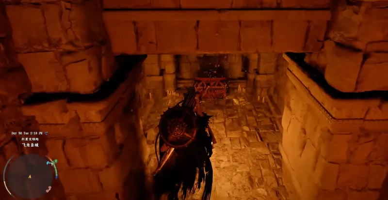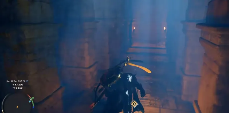 你会看到一个向下的洞口。下去之后,会发现两边各有一个灯柱。这里有个小窍门:将它们依次点燃。