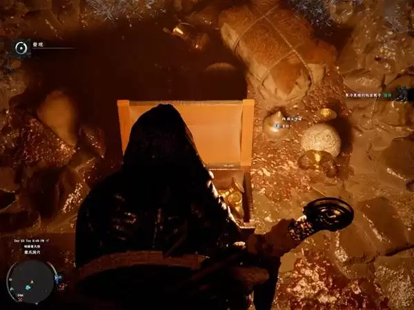 接下来是盔甲。这件的位置相对隐蔽,在敌营左侧的岩壁附近。到了那片区域,仔细找找岩壁上可以点亮的灯。没错,点亮它,隐藏的路径就会打开,进去就能轻松拿取。