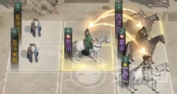 这个闭环链是这样启动的:董卓的天赋“独断专权”可以发动主动效果,强制夺取敌我双方全体的统率值,并对随机3名敌方目标造成伤害并附加挑衅。这就相当于强行搅乱了战场秩序,为后续控制创造了条件。