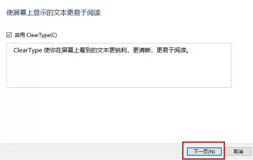 第四步,这时会启动ClearType文本调谐向导。它的作用,就是通过几步简单的视觉选择,为你的显示器匹配最清晰的字体显示效果。你只需要根据屏幕提示,在每一步中选出你认为最清晰、最舒服的文字样本,然后点击“下一步”即可。