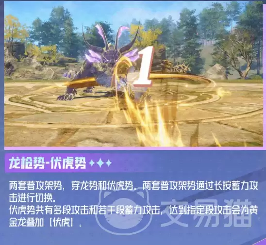 王秋儿的基础攻击分为伏虎势与穿龙势两套独立但可切换的连段体系