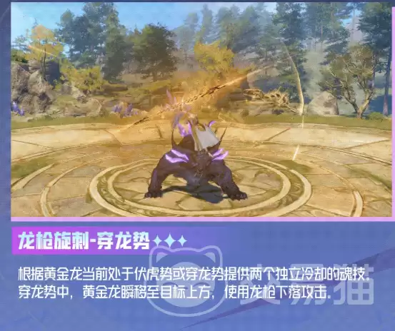 第二魂环提供了根据架势变化的差异化魂技,非常考验玩家的临场判断。在伏虎势下,“龙枪旋刺·伏虎势”会让王秋儿向后小幅位移并投出旋转龙枪,兼顾远程补刀和维持安全距离;切换到穿龙势后,技能变为“龙枪旋刺·穿龙势”,角色会突进到目标正上方猛力下砸,具备强大的近身压制和终结能力。两个技能的冷却独立计算,用的时候一定要看清当前架势,确保技能效果能精准服务于你的战术意图。