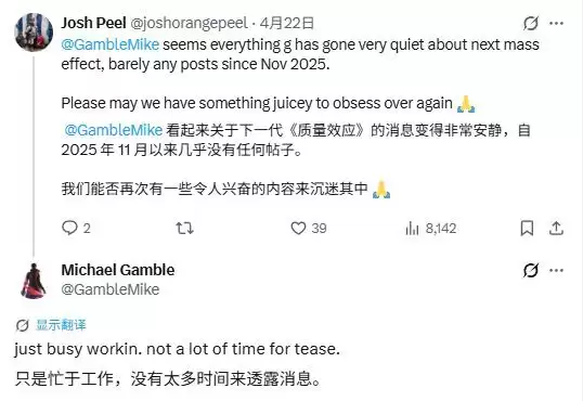 BioWare 项目总监 Michael Gamble 在 X 上回复网友时提到,其团队正在全力开发《质量效应 5》,根本抽不出时间来做宣发。