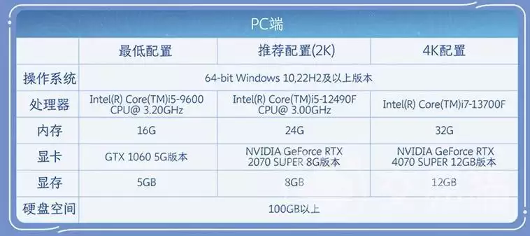 首先看安装空间,也就是你的硬盘或手机存储得有多大“余粮”。官方给出的建议是:PC端最好预留出至少100GB的可用空间,移动端则不少于40GB。要注意,这个数字可不是单纯的安装包大小,它是个“总包价”,把客户端解压、游戏资源缓存、日常热更新以及未来大型资料片所需的空间,全都考虑进去了。简单说,这就是为了让游戏能长期、顺畅运行而划定的“安全区”。
