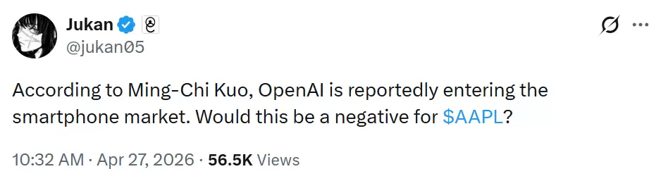 分析人士Jukan也持类似观点,他认为,如果OpenAI成功推出以AI Agent为核心的新形态手机,很可能对苹果构成潜在的利空因素。