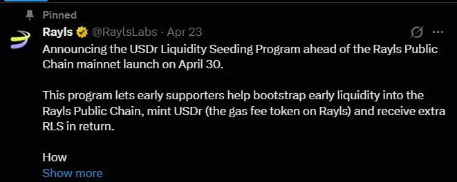 没错,日期已经敲定。根据官方在X平台发布的公告,Rayls代币主网将于2026年4月30日正式启动。这无疑是一个关键节点,因为它意味着合规、交易和基金工具将被整合进一个统一的网络。机构用户的采纳程度,很可能直接塑造早期的市场需求。而项目方推出的流动性计划,正是为了吸引首批用户入场。可以说,未来几天至关重要,市场参与者都会紧盯着资金流入系统的趋势。此次更新的一大亮点,便是同步推出了美元瑞尔(USDr)货币流动性种子计划。