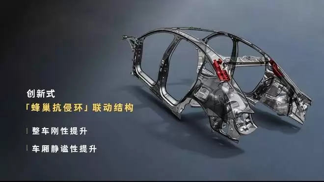 安全方面,精灵 6 号整车高强钢与铝合金占比达到 85%,热成型硼钢占比 16%,采用笼式车身结构,并搭载神盾电池安全系统。针对掀背车型特殊的尾部结构,车辆加入了“蜂巢抗侵环”设计,对 C 柱区域进行了加固和优化。这类结构设计,尤其影响着在追尾等尾部碰撞场景下的乘员保护能力。掀背车由于尾门开口更大,尾部结构本就复杂,如何在保证造型美感和实用性的同时确保车身刚性,是必须攻克的技术课题。
