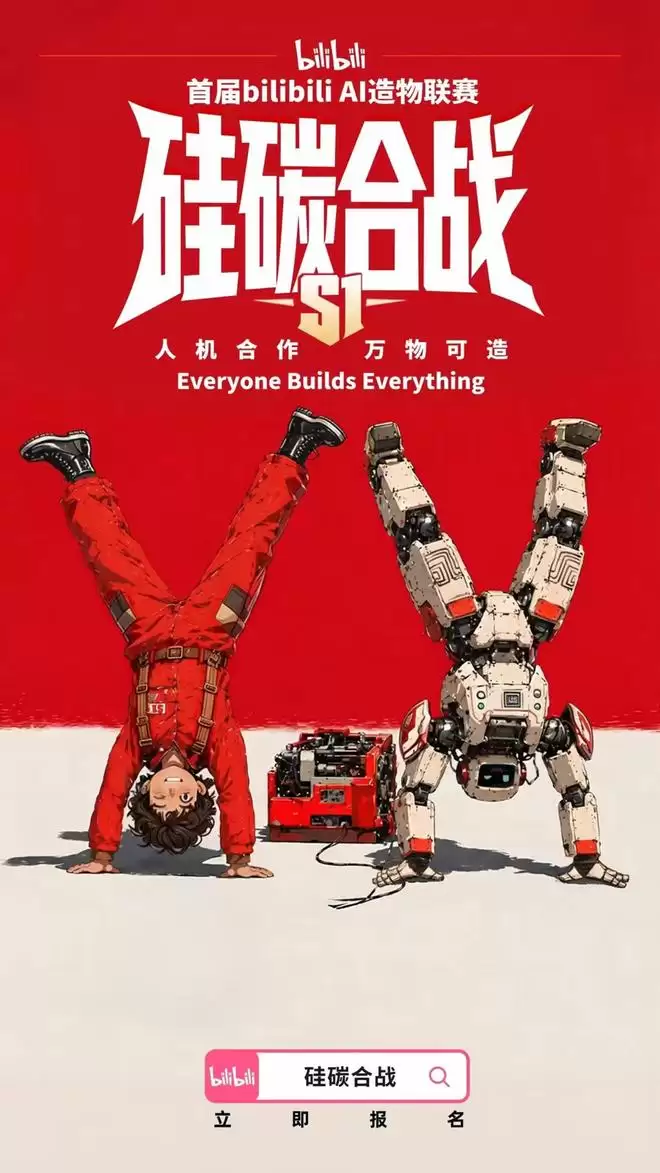 当多数平台仍用黑客马拉松推动AI创新时,B站今天公布的首届AI造物大赛《硅碳合战》却显得有些反常:没有强调技术门槛,没有限定开发形式,甚至在赛制尚未完全公布的情况下就率先释放概念海报。