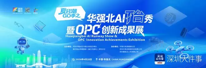 4月28日下午,华强北夏日潮GO季系列活动——华强北AI T台秀暨OPC创新成果展,将在华强北主街华强广场酒店前重磅启幕。这可不是一场普通的展会,而是一次为AI创新发展注入强劲动能的产业模式革新。