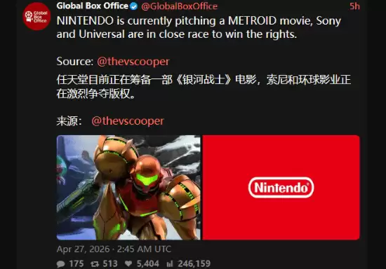 业内消息透露,任天堂目前正在主推《银河战士》改编电影项目。索尼与环球影业正激烈竞争该IP改编版权,双方博弈热度持续升高。