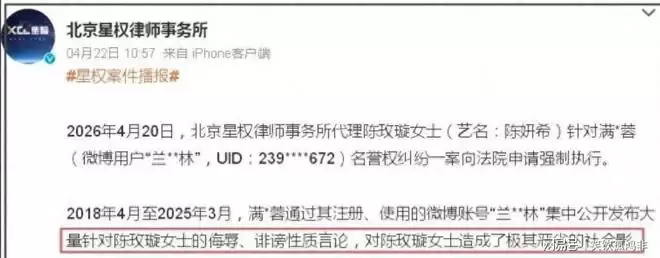这场网暴的源头,直指陈晓圈内一位极其核心的大粉——满某蓉。自2018年起,此人仿佛开启了仇恨的闸门,对陈妍希进行持续不断的攻击。攻击内容之恶劣,简直令人瞠目:从最初的外貌羞辱与谩骂,逐渐升级为恶意编造私生活谣言,甚至恶毒到质疑孩子的身世。这些字字诛心的言论,在网络上肆意传播了七年之久。这种有组织、高强度的持续性贬损,其破坏力足以摧毁任何一个人的精神世界。
