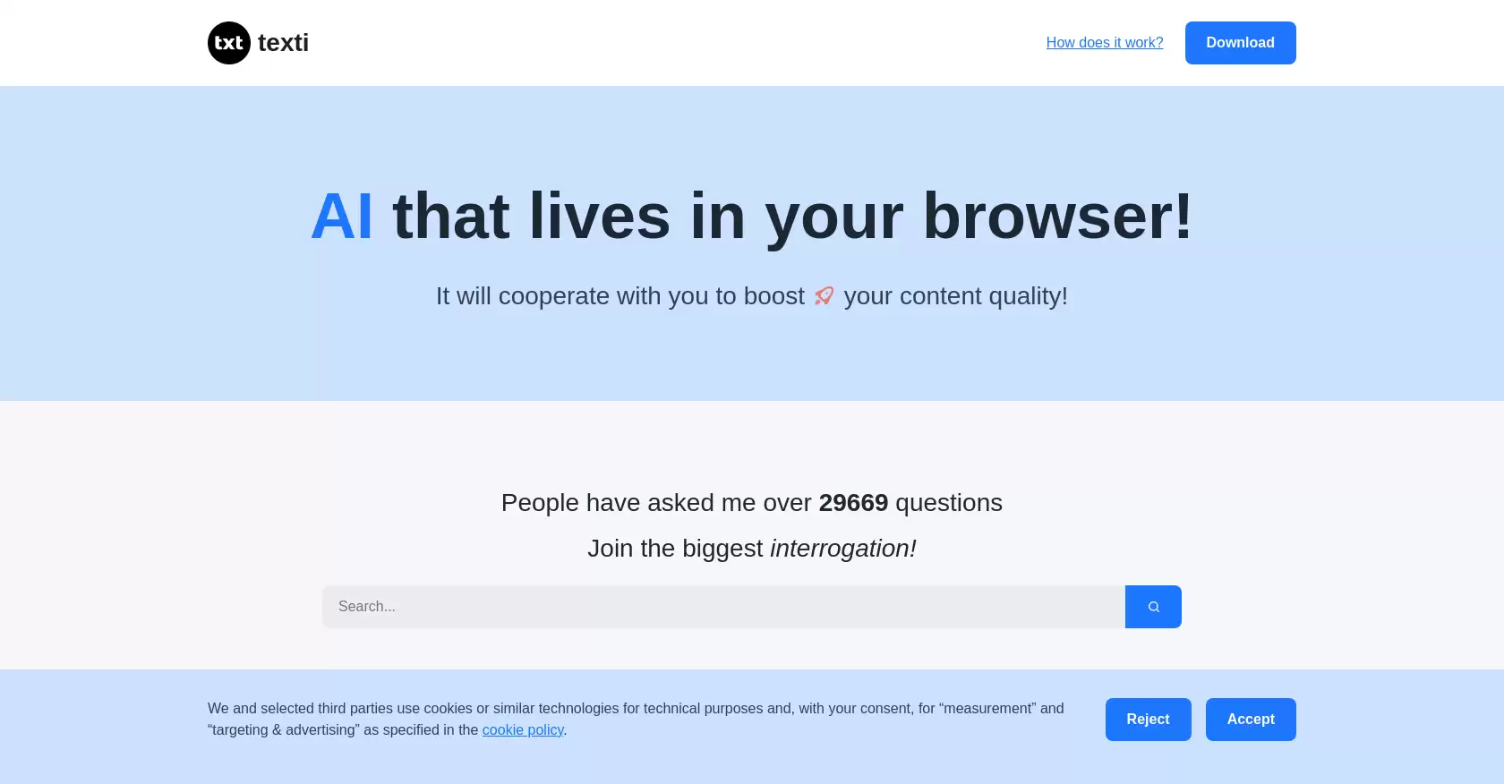它的官方网站(https://texti.app)清晰地阐述了其定位。简单来说,Texti的核心理念是让AI存在于你的浏览器中,成为你的协作伙伴。它并非要取代你的创作,而是旨在与你合作,共同提升最终产出的内容质量。