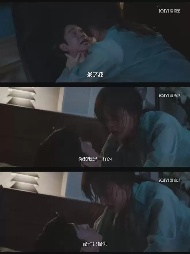 其次,导演薛晓路(亦是经典剧集《不要和陌生人说话》的编剧)的镜头语言,极大强化了这种惊悚氛围。那些被网友称为“阴间镜头”的画面——颜聆梦中母亲溺亡后满脸污泥的特写、罗梁坦白杀人时瞬间切换的狞笑、被逼疯的乔子珊梦中母亲被美杜莎控制的意象——配合高频刺耳的音效,制造出极强的心理压迫感。