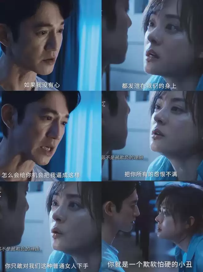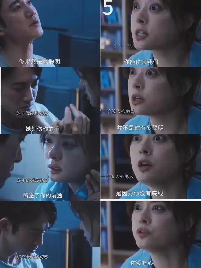 更可怕的是心理层面的摧毁。他娴熟运用“煤气灯效应”,通过篡改证据、扭曲宠物仓鼠的死因,一点点否定并篡改颜聆的记忆。他甚至重复颜聆童年被“丁叔叔”性侵并PUA的经历,将她逼至崩溃边缘,使其只能不断自我否定,反复道歉。剧中罗梁故意掰断仓鼠腿再假装救治的细节,被观众评为“年度心理阴影”,它精准隐喻了其“先摧毁、再拯救、最终彻底掌控”的操控逻辑。