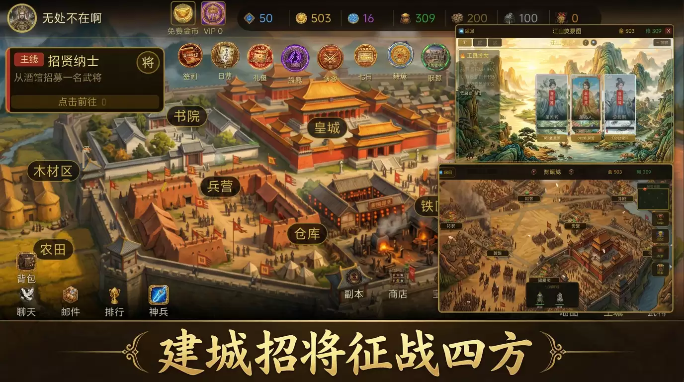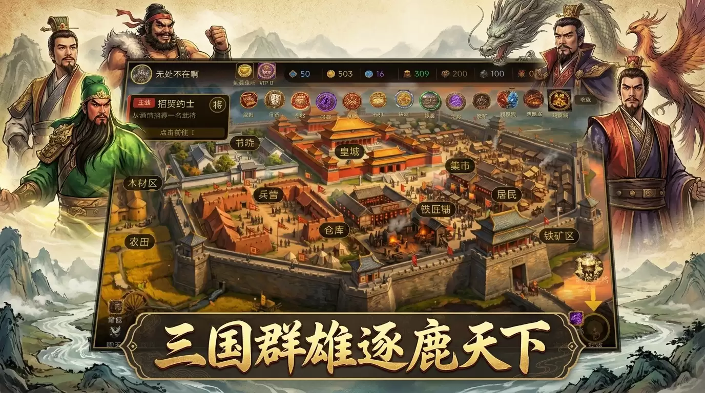 从核心玩法来看,《三国无处远征》是一款典型的“招兵买马、开疆拓土”式策略游戏。玩家需要扮演一方势力,核心体验围绕招募历史名将、经营建设自己的城池,并最终通过一系列征战与谋略,达成问鼎天下的目标。对于喜欢深度经营和宏观战略的SLG爱好者来说,这个框架想必不会陌生。
