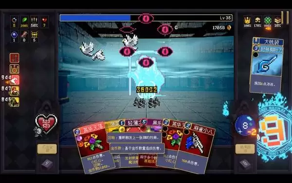 相比之下,红死神才是真正的后期考验。这里有个有趣的版本变迁:在Demo时期,红死神的强度可谓“颇具人情味”,一回合仅造成100点伤害,且出现后不会立刻攻击,玩家只要堆高血量、循环卡组就能慢慢磨过去——当然,打败它也没什么额外奖励,因为会立刻刷新下一个,循环往复。
