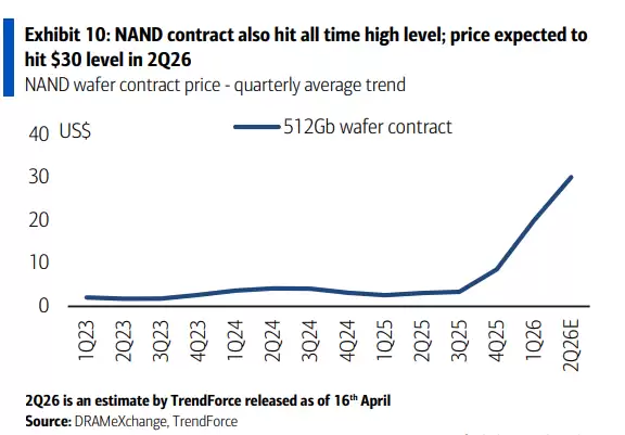 这一系列动作对市场意味着什么?核心逻辑正在切换——从追逐“AI溢价”的故事,回归到“传统供给短缺”的现实。数据显示,DRAM合同价格在2026年二季度已经创下历史新高,16Gb DDR5的合同价预计环比还要再涨超过20%;NAND合同价同样处于历史高位,预计二季度将升至30美元左右。当传统存储展现出如此强悍的赚钱能力,巨头们重新权衡产能分配,也就成了必然的选择。