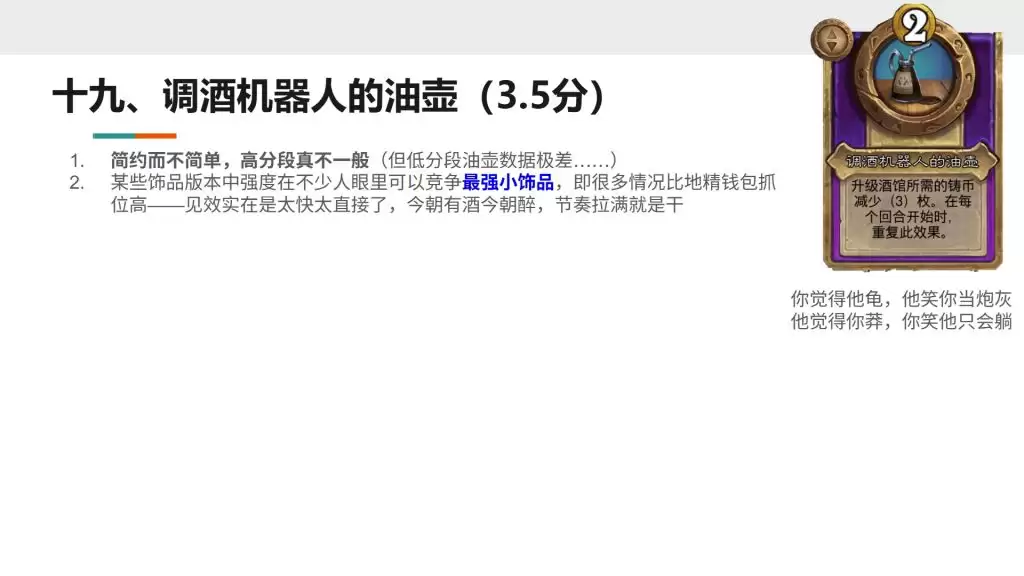 酒馆战棋S13小饰品调酒机器人的油壶强度一览