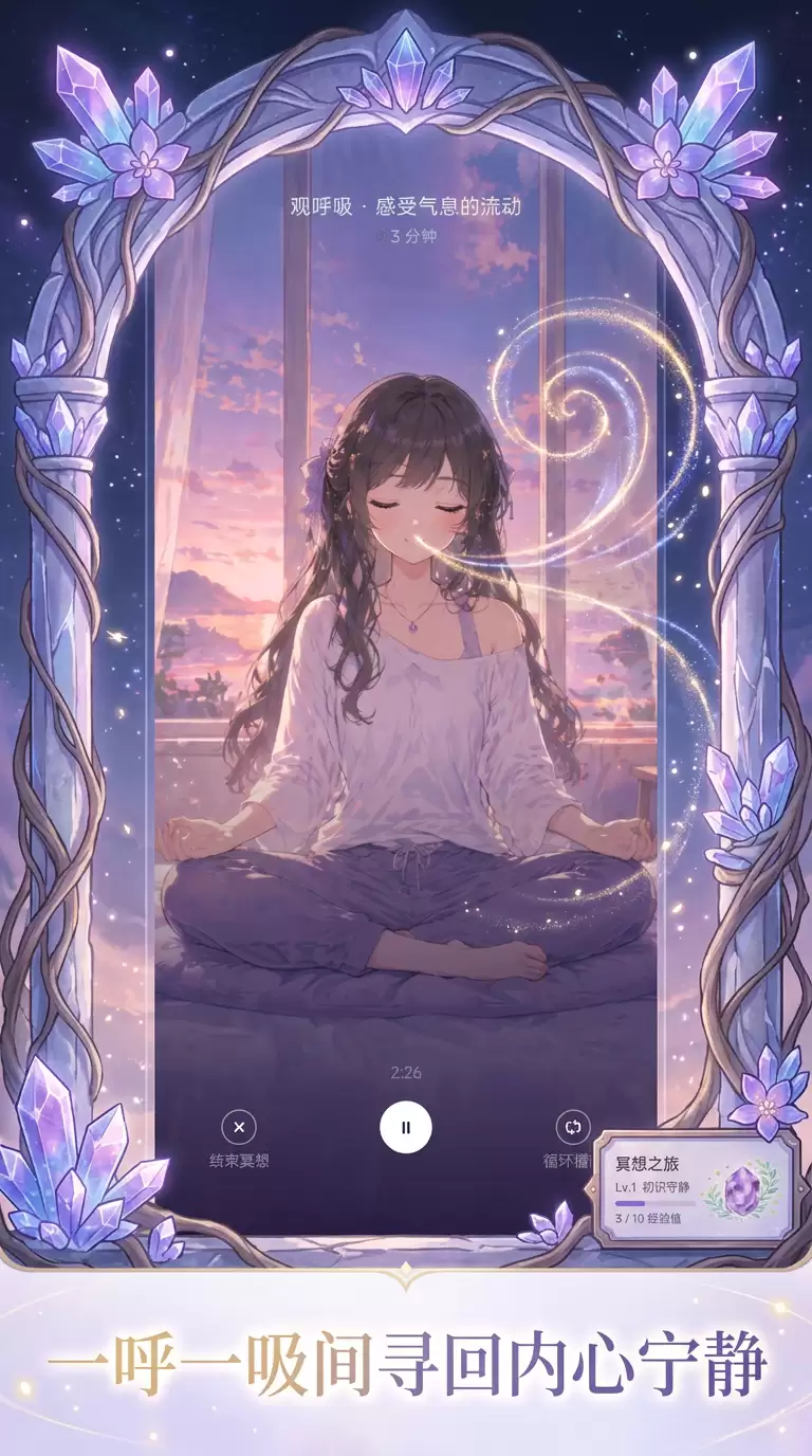 简单来说,《心流冥想》的核心在于“一呼一吸,一念一世界”。它并非传统意义上的竞技或闯关游戏,而是一款每日冥想打坐的辅助工具。通过精心设计的引导式呼吸练习,它旨在帮助你放松紧绷的神经、培养深层专注力,甚至在夜晚温柔地“哄”你入睡。游戏还会贴心地记录你的冥想历程,让你直观地看到内心一步步回归平静的轨迹。可以说,它更像一个装在口袋里的私人静心空间。
