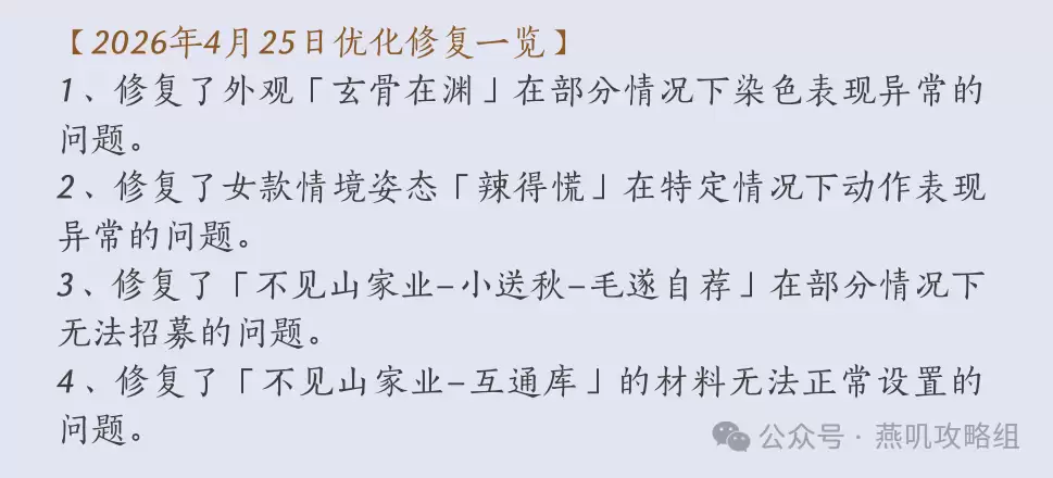 《燕云十六声》武绫鼓版本前瞻:三大核心资源提前囤积指南,助你快速毕业新武器与外观! 各位少东家,新版本“武绫鼓”上线的脚步日益临近。想要在新武器实装后第一时间完成毕业,抢占先机?现在正是着手筹备的关键时刻。本文将为你详细梳理,在版本更新前必须提前囤积的三大核心资源,助你高效备战,轻松应对全新武学系统