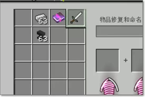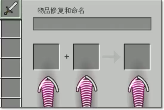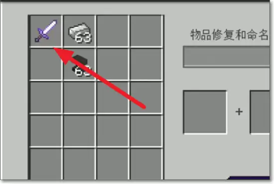 3. 然后,在铁砧界面的左侧输入栏放入需要附魔的物品(比如一把剑),在右侧输入栏放入你准备好的附魔书。