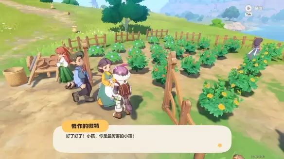顺着方向往前走,眼前会豁然开朗,出现一片整齐的田地。仔细看,田边站着一位女性NPC。