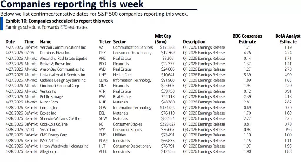 本周最受市场瞩目的,无疑是五家“科技七巨头”成员的集中业绩报告。值得注意的是,分析师对这五家公司的预测均高于市场普遍共识。