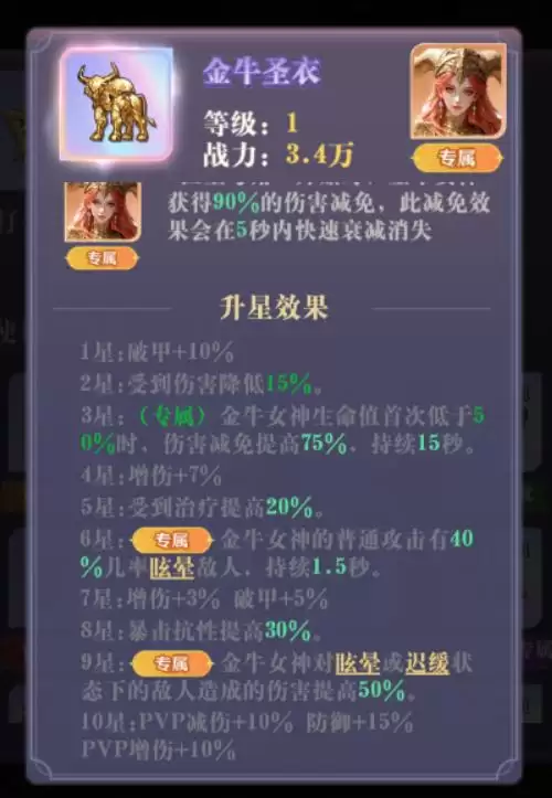 这是一个常驻的生存向被动,永久提升10%生命与10%防御。数值看似朴实,却是金牛女神作为核心承伤角色的基石,所有百分比生命加成的收益都建立在此之上。