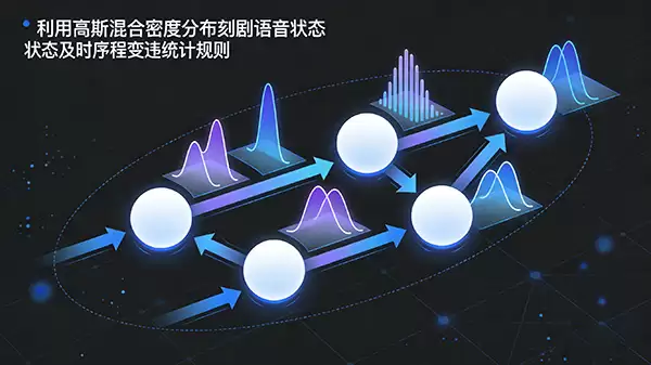 隐马尔可夫模型之所以重要,是因为它巧妙地刻画了语音的两个核心规律。一方面,它用高斯混合密度分布来描述每个语音状态(比如一个音素)的声学特征;另一方面,它又模拟了这些状态之间随时间转换的统计规律。这种既能处理静态特征又能处理动态时序的能力,让它成为了构建现代声学模型的基石之一。