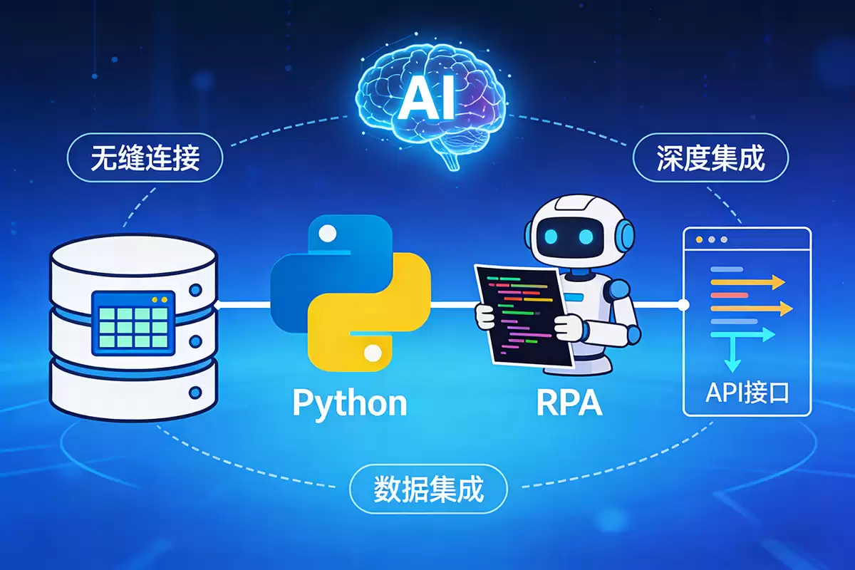 这时候,采用Python进行RPA开发的价值就藏不住了。作为一种生态强大的通用语言,Python不仅能搞定传统的桌面自动化,更能扮演企业技术栈中的“超级粘合剂”。接下来,我们就从三个维度拆解一下,为什么Python正成为企业实现深度自动化集成的核心武器。