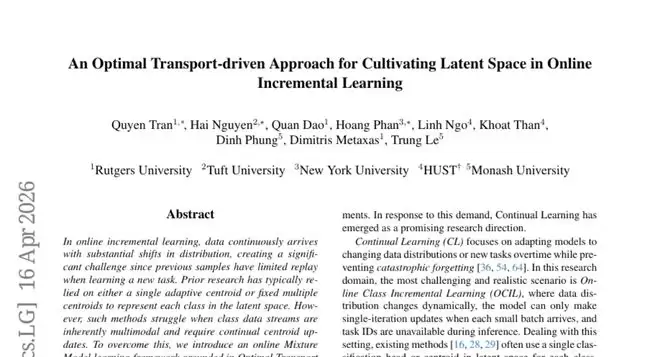 这对于需要持续学习的AI系统来说意义不小。未来的自动驾驶系统、家用服务机器人、个性化推荐引擎,都需要在运行中不断学习而不遗忘。OTC提供的这套工具,可能会成为这类系统的重要基础设施之一。当然,任何研究都有其局限:质心数量的最优设置需要根据具体场景调整,缓冲区的选样策略还比较简单,未来也许有更精妙的替代方案。但作为在线增量学习领域将最优传输理论与混合模型结合的首次系统性探索,它开辟了一条值得继续深走的路。
