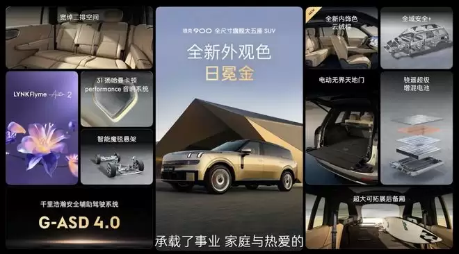 汽车3月6日消息,今日,领克 900 全尺寸旗舰大五座 SUV 官宣亮相,带来全新“日冕金”车色。目前在售的领克 900 于 2025 年 4 月 28 日上市,售价为 30 99 万-41 69