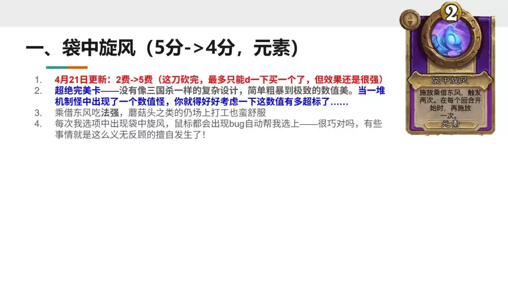 旋风的技能核心在于“定向成长”。和那些随机Buff全场或随机随从的技能不同,它把成长资源集中到了一个随从身上。这意味着什么?意味着你在前期可以快速养出一个身材超模的“大哥”,用来稳住血量,甚至压制对手。