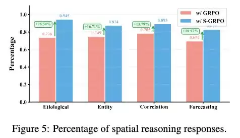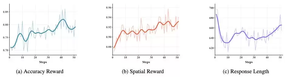 - 空间感知奖励机制:这是促使模型发生质变的关键。数据显示,引入该机制后,模型主动利用空间信息的比例显著提升。其意义不在于单纯提高准确率,而在于实现了从“可能不用结构”到“主动依赖结构”的范式转变。