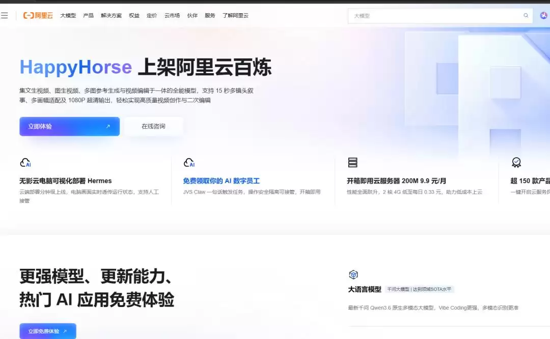阿里ATH创新事业部的最新视频生成模型HappyHorse 1.0(快乐小马),今天正式开启了灰度测试。对于创作者而言,现在可以通过阿里云百炼平台和HappyHorse官网进行注册体验,而大众用户则能在千问App里尝鲜。