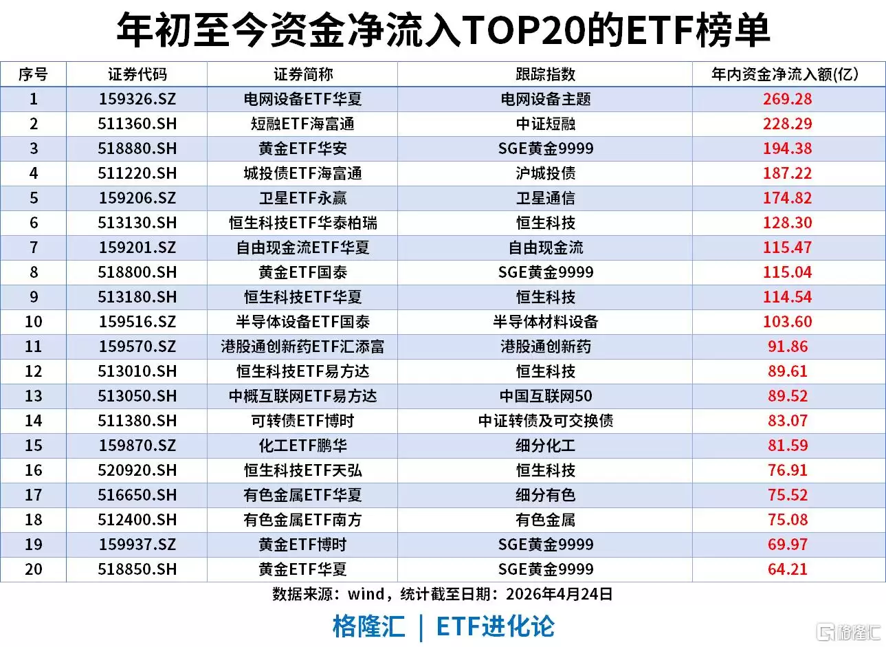 最后,从全年资金的布局来看,一个稳定而多元的结构已然成型。电网设备ETF成为年度“吸金王”,能源电力赛道获得了最高度的认可,是贯穿全年的核心配置方向。黄金类ETF合计流入超370亿元,短融、城投债等固收品种流入超400亿元,这充分反映了市场对避险和稳健资产的持续需求。与此同时,恒生科技、创新药等科技成长赛道也获得了百亿级别的长期重仓。最终,市场形成了“能源+黄金+科技成长+医药”的年度资金结构,高景气赛道与防御资产并重。