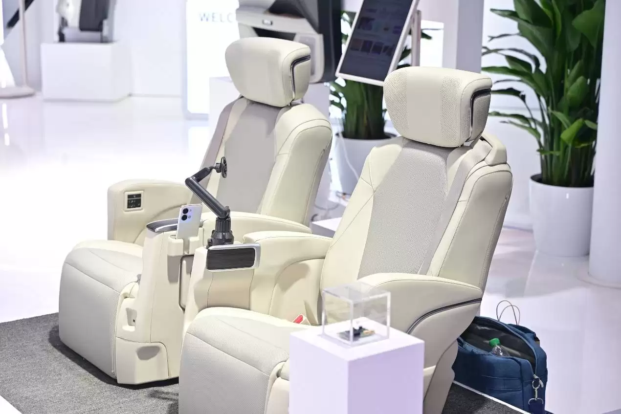量产产品展区,则像是一场高端制造实力的集中检阅。这里没有概念渲染,只有触手可及的工艺。丰田铂智7的座椅被Nappa真皮完整包裹,通风、加热功能已是标配,其靠背最大可调角度达到10°,再结合双电机驱动的零重力技术,可以说重新设定了豪华乘坐的基准线。而丰田埃尔法的座椅,更是将细节打磨到了极致:仿指压按摩系统模拟人手触感,低回弹聚氨酯填充材料提供恰到好处的承托,半苯胺航空级真皮则确保了触感的细腻。这两款产品清晰地传递出一个信号:真正的豪华,源于对每一个工程与人机工学细节的极致追求。