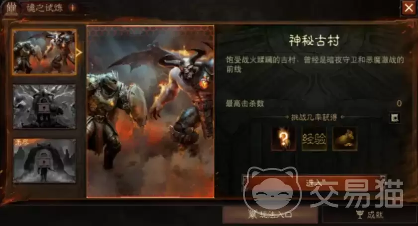 活动期间,前往凯恩小屋,通过原先“魂之试炼”的入口,就能进入这个全新的“撕裂地狱”副本。玩法采用了经典的Roguelike机制,全程由三段式关卡构成。每成功闯过一关,你都能强化一次战斗配置,像拼图一样,逐步构筑起自己专属的高爆发武器体系。首关“神秘古村”,地形紧凑,敌人密度适中,非常适合用来快速适应节奏,熟练掌握基础连招和位移技巧。