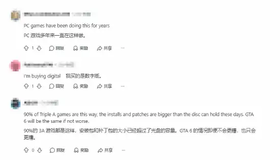 当然,讨论中也出现了一些对比和不同的声音。有玩家搬出经典老游戏的激活规则:早期的单机作品,即便有网络绑定,也大多局限于首次的账号激活,绝不会全程限制光盘的游玩体验。话说回来,也有玩家保持了相对理性的看法。他们认为,在当下,这或许是一种无奈的现实:主流3A大作的体积日益膨胀,光盘的物理储存空间早已捉襟见肘,那些动辄数十GB的日更补丁和额外内容,除了依靠网络下载补充,似乎也别无他法。