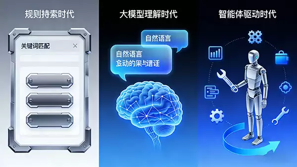 2. 大模型理解时代: 这是一个质的飞跃。得益于大模型技术,系统开始真正理解自然语言背后的用户意图,回答不再只是“匹配”,而是具备了总结和创作的能力,沟通变得自然流畅了许多。