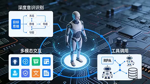 2. 多模态环境感知与交互: 这与传统自动化有本质区别。智能体能够通过计算机视觉等技术,像人一样“看见”并操作软件界面,识别其中的文字、按钮、图标等元素,实现了对数字环境的直接交互。