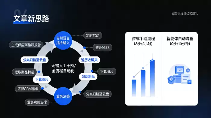 因此,“1688商品图片如何批量保存”这个问题的终极答案,早已超越了具体技术工具的选型。它实际上指向一个更深刻的趋势:在智能体的驱动下,所有那些确定、重复、且需要跨系统协作的数据获取与处理任务,都将被无缝地自动化。