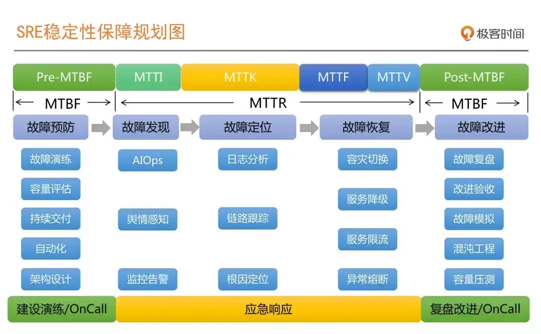 围绕故障全生命周期(预防 → 发现 → 定位 → 恢复 → 复盘),每一项工作都应对齐这两个目标展开。