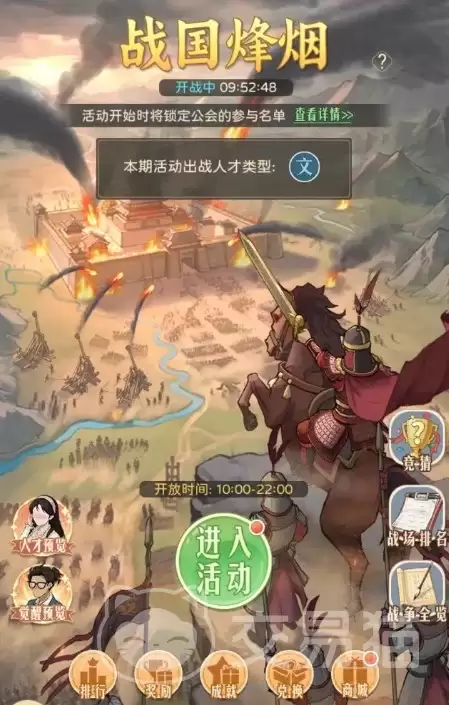 简单来说,“战国烽烟”是一场周期性的公会战争。玩家将以诸侯的身份,统率自己的势力,在一张动态沙盘地图上展开领土扩张和战略博弈。整个活动持续3天,每天的开放时间是上午10点到晚上10点。报名采用自动机制——公会一旦确认参战,成员名单就会被锁定;如果没在规定时间内完成报名,那就只能遗憾错过当期的战斗了。