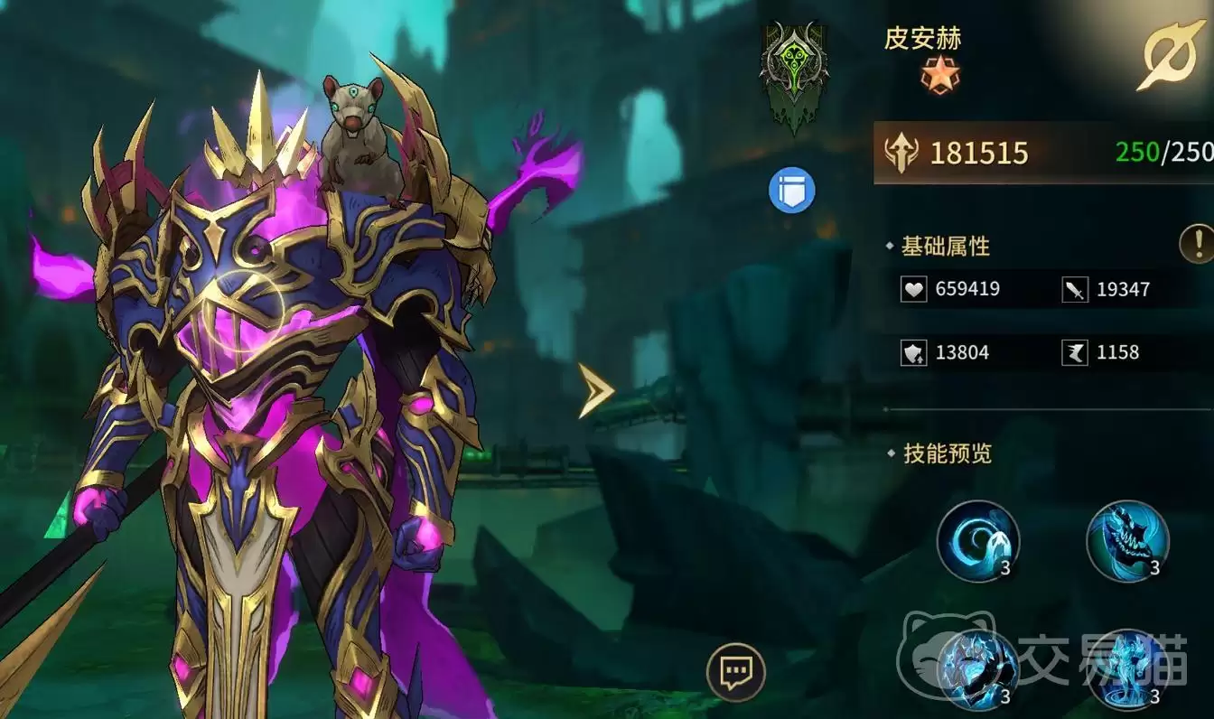 皮安赫是一位极具战术价值的后排守护者。他的主动技能针对敌方后排,附加额外伤害并提升自身免伤率。被动让他的普攻能追加伤害并有概率石化对手;受到攻击时,他能给攻击者施加附伤标记并概率自愈。而最核心、也最让对手头疼的被动是:“首次退场后,下回合自动重返战场”。这个机制极大地延长了他的有效作战时间,显著提升了阵容整体的容错阈值,相当于多了一条命。