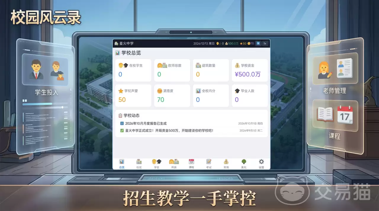 你是否也曾幻想过,在虚拟校园里不再只是扮演一名学生,而是成为那个运筹帷幄的核心人物?现在,机会来了。《校园风云录》这款文字向校园经营模拟手游,为这种期待提供了一条全新的路径——在这里,你的身份将彻底转变,成为执掌全校事务的校长。从师资配置、课程规划,到资金调度和升学指标,所有决策权都交到你手中,让你真正体验到教育管理背后的深度策略感。目前,游戏尚处于测试阶段,官方还未公布确切的公测时间,值得大家保持关注。